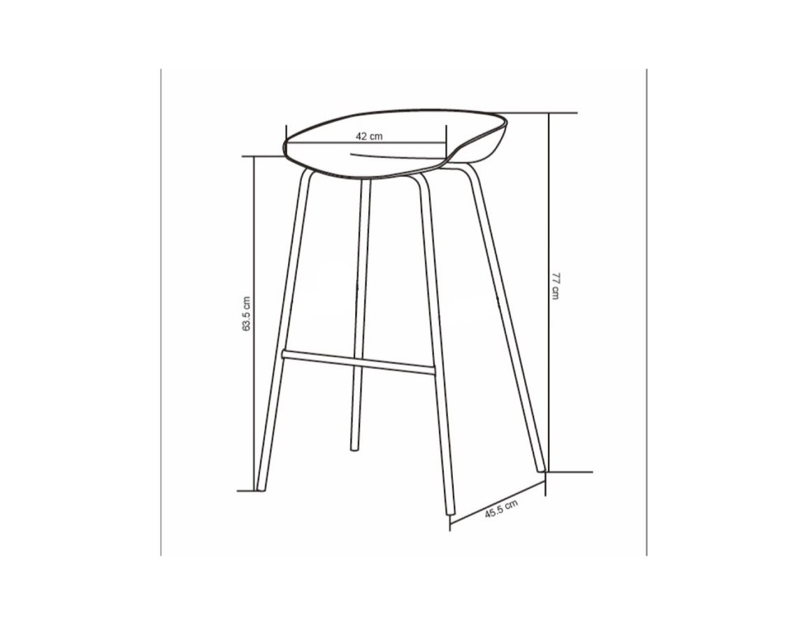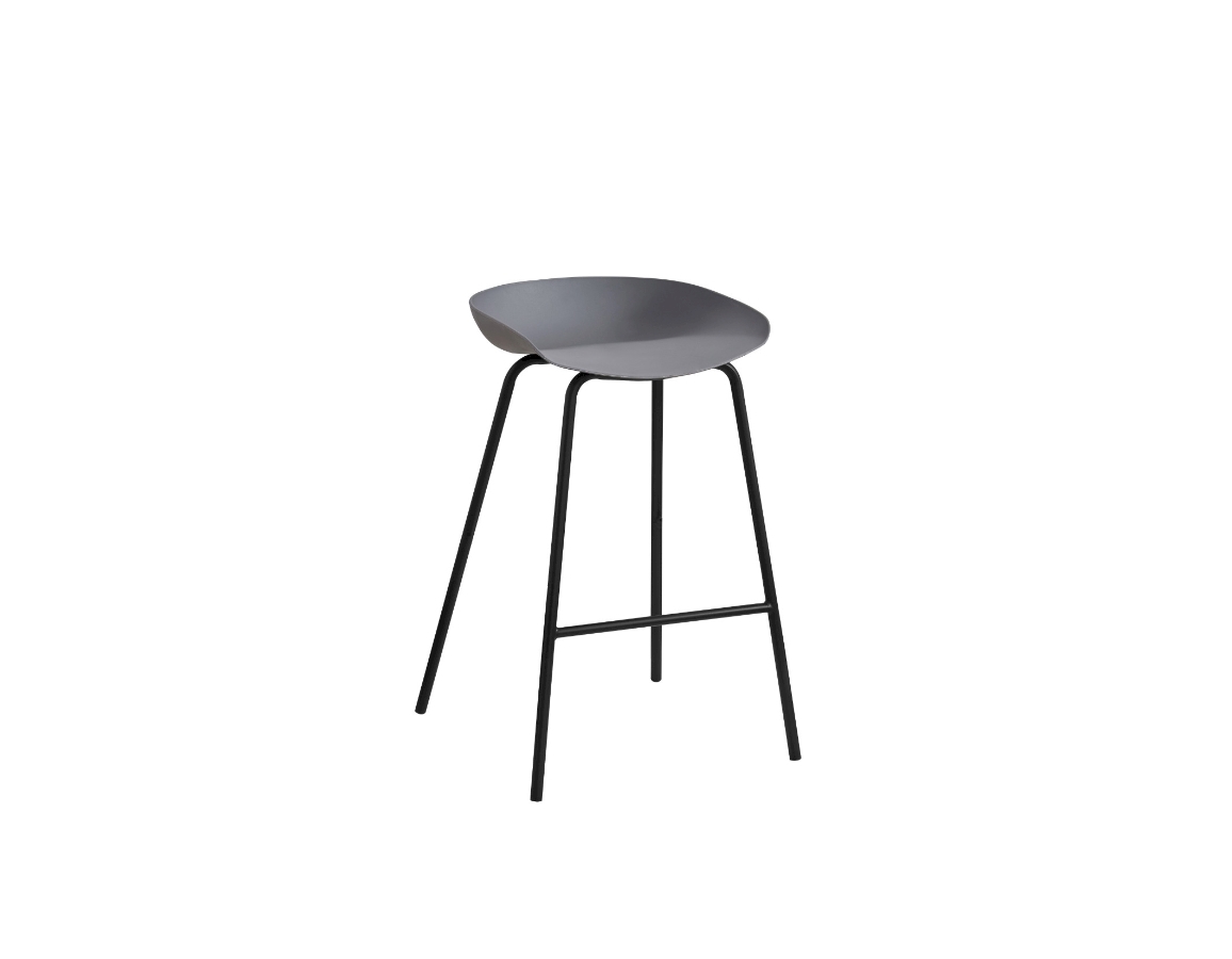 Jednostavna barska stolica. Sjedište je izrađeno od čvrstog polipropilena s ergonomskim profilom koji pomaže rasteretiti tijelo pri dugotrajnom sjedenju.