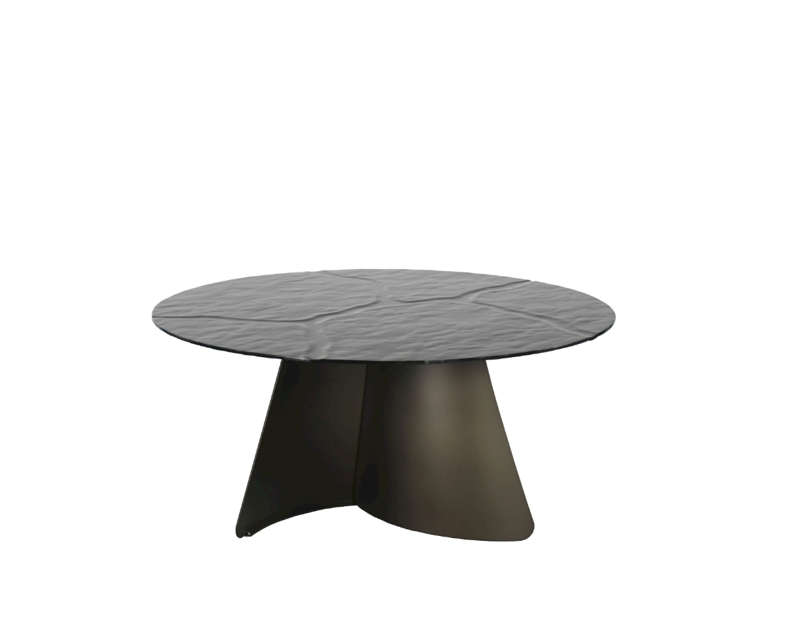 Stol stoji na čvrstoj metalnoj podlozi od tri zakrivljene ploče, s brončanom završnom obradom. Široko proširenje nogu i valoviti oblik ploča osiguravaju izvrsnu stabilnost, dok zakrivljeni oblik, zajedno s valovitim odrazom ploče stola, naglašava estetiku dizajna.