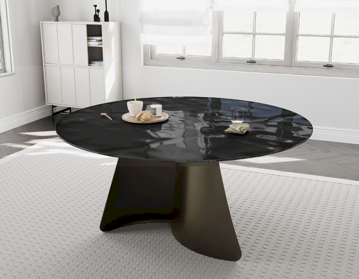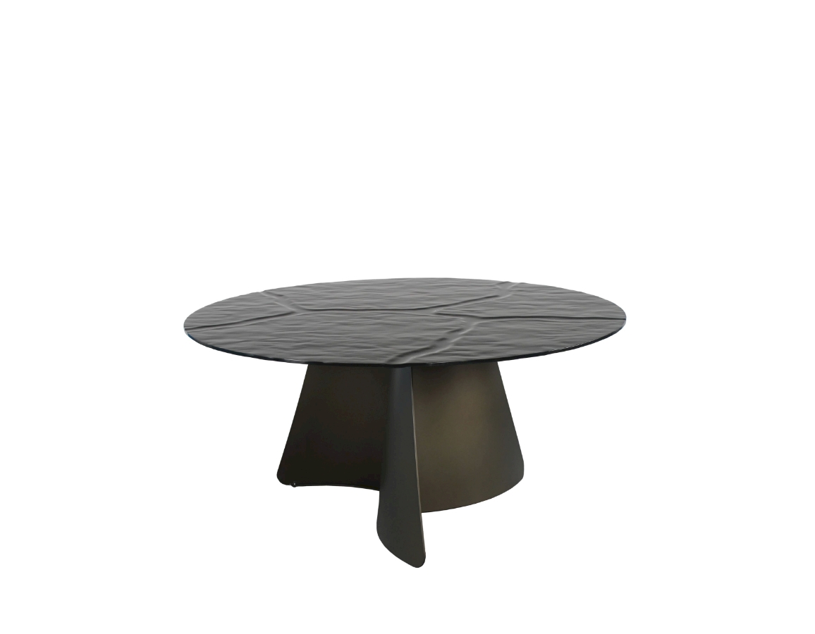 Ploča stola izrađena je od 12 mm debelog stakla, dizajniranog s neravnomjernom teksturom. Kružni oblik stola omogućuje ravnomjeran razmak i dobru interakciju, što ga čini prikladnim i za objedovanje i za sastanke.