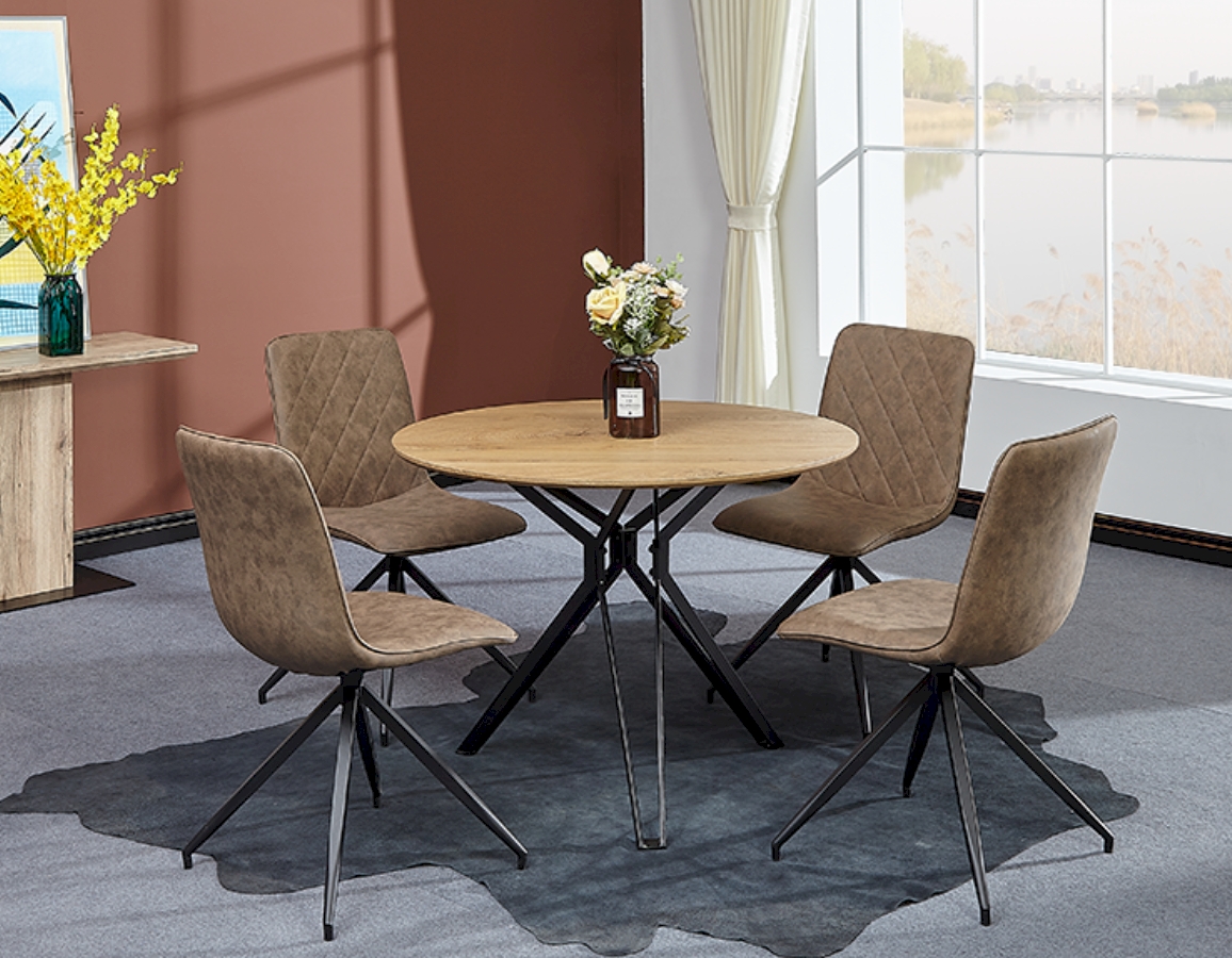 Okrugli trendi blagovaonski stol dostupan u boji divljeg hrasta.