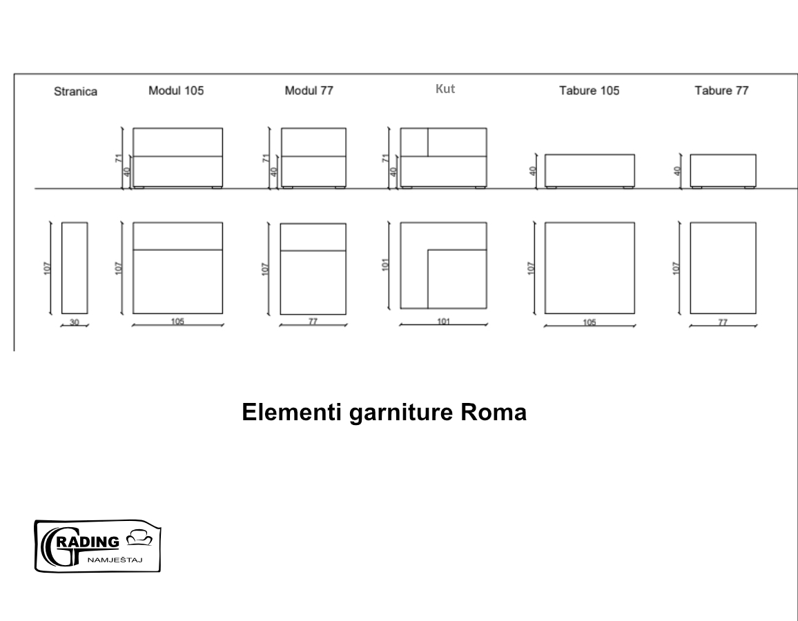 Modularni sistem koji omogućuje slaganje garniture po želji.