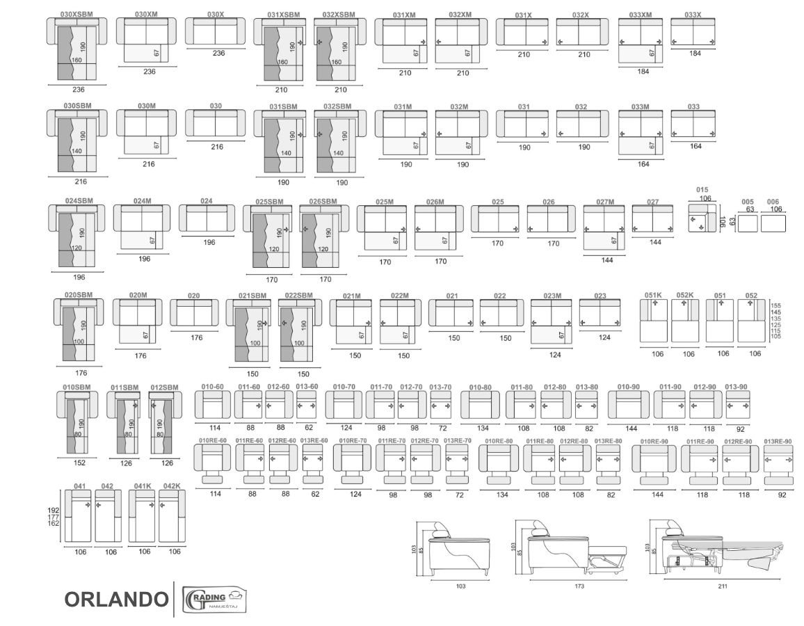 Veliki izbor elemenata koji omogućuju slaganje garniture po želji.