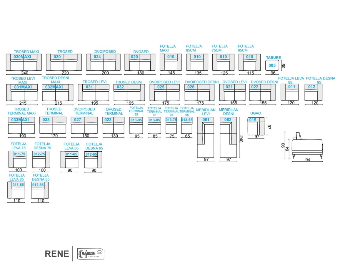 Dimenzije: š/d/v: 290/240/90 cm