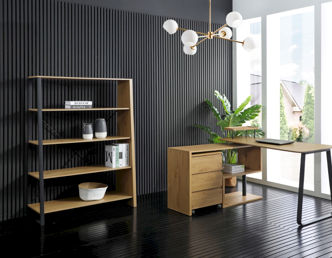 Osim gornje ploče ima 4 fiksne, prostrane police izrađene od MDF-a debljine 15 mm presvučene melaminom s izgledom prirodnog drva.