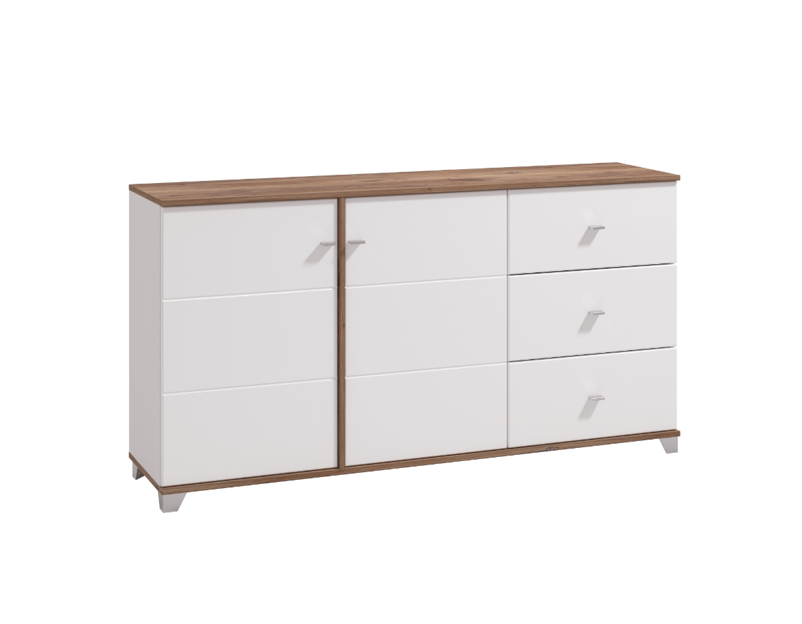 Sustav BURGUNDY elemenata za opremanje dnevnog boravka karakterizira hrabra kombinacija dekora s kontrastnim elementima, ali i jednostavna dizajnerska forma, koja daje jasnu definiciju interijeru. Iskorak u kontrastnom dekoru doprinosi profinjenosti i eleganciji cjelokupnog ambijenta. Kombinacija toplog dekora hrasta flagstaff i bijele lak folije predstavlja novu razinu estetske smjelosti koja karakterizira najmodernije domove, dok metalne ručke unose dodatnu ozbiljnost u dizajn ovog sustava elemenata.