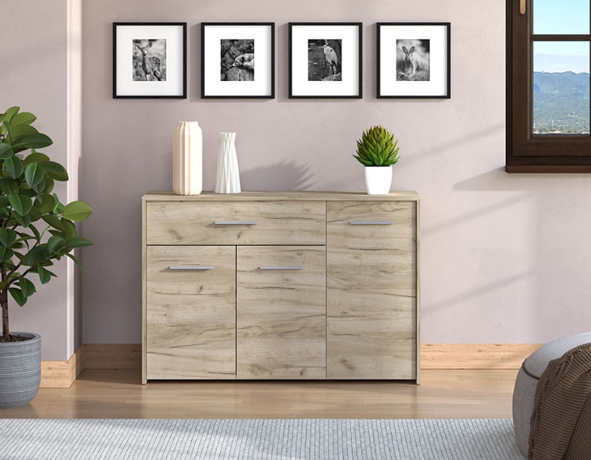 Dobro raspoređen korisni prostor ove komode sastoji se od tri zatvorena dijela s policom i praktičnom ladicom.