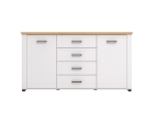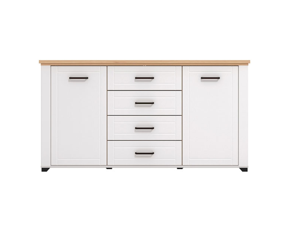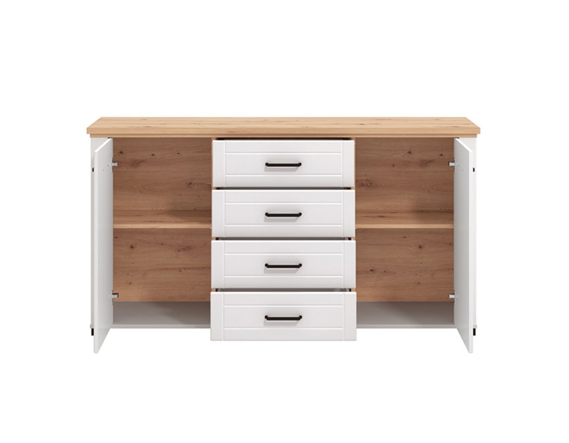 Korisni prostor čine praktične ladice u središnjem dijelu i dva zatvorena dijela koji imaju praktično raspoređene police za odlaganje. Fronte su obogaćene crnim ručkama jednostavnog dizajna koje su usklađene s dizajnerskom linijom cijele kolekcije.