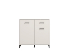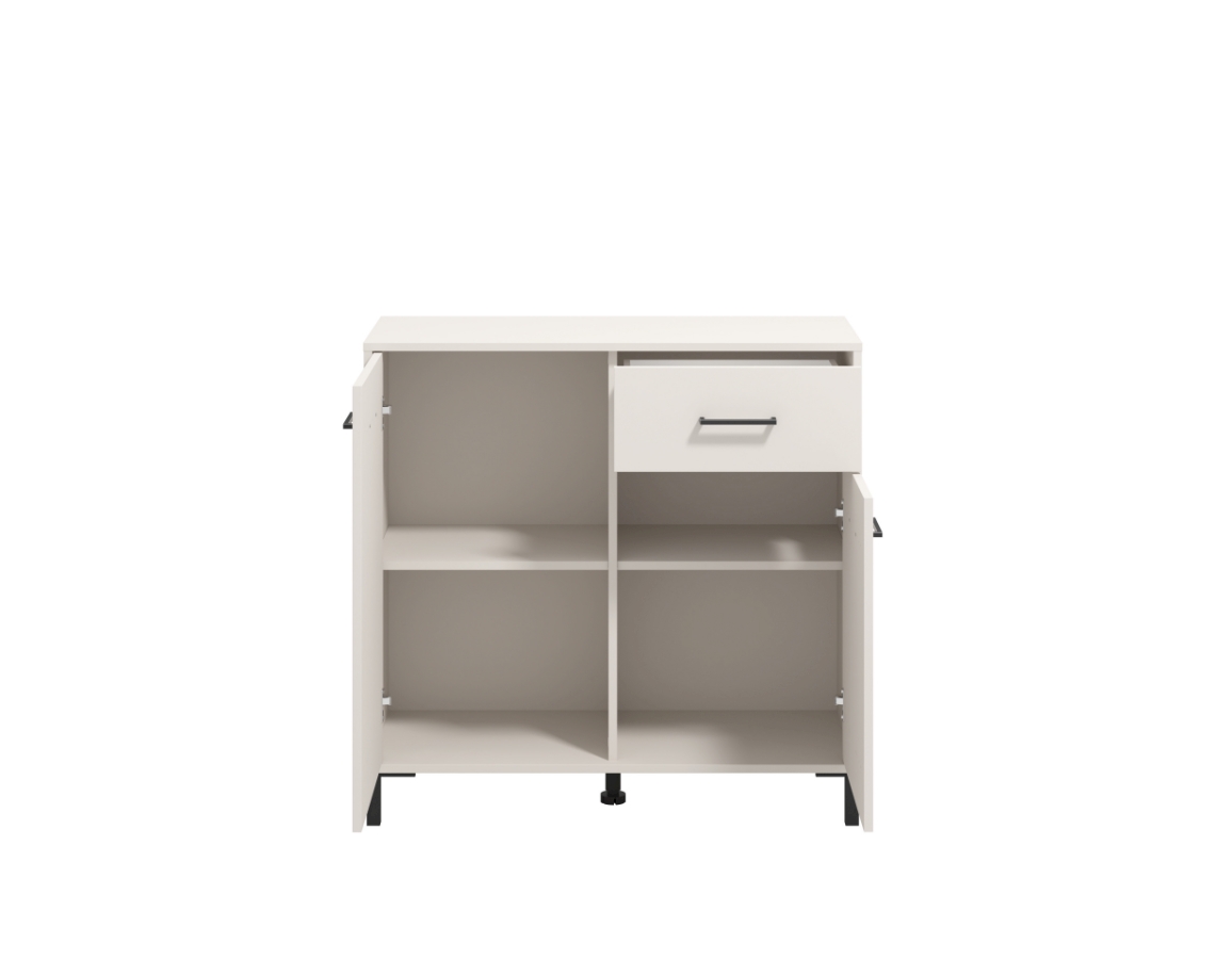Komoda se sastoji od dva zatvorena dijela s vratima i jednom ladicom.
