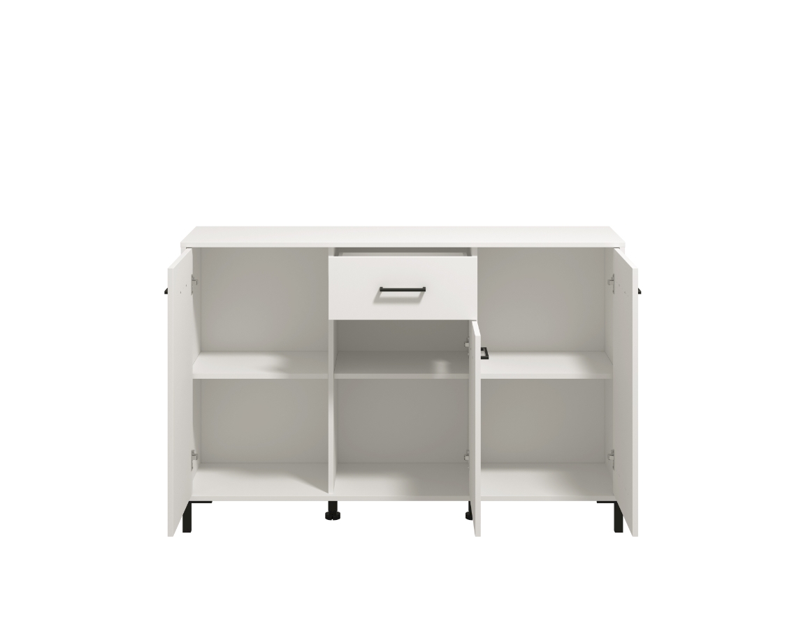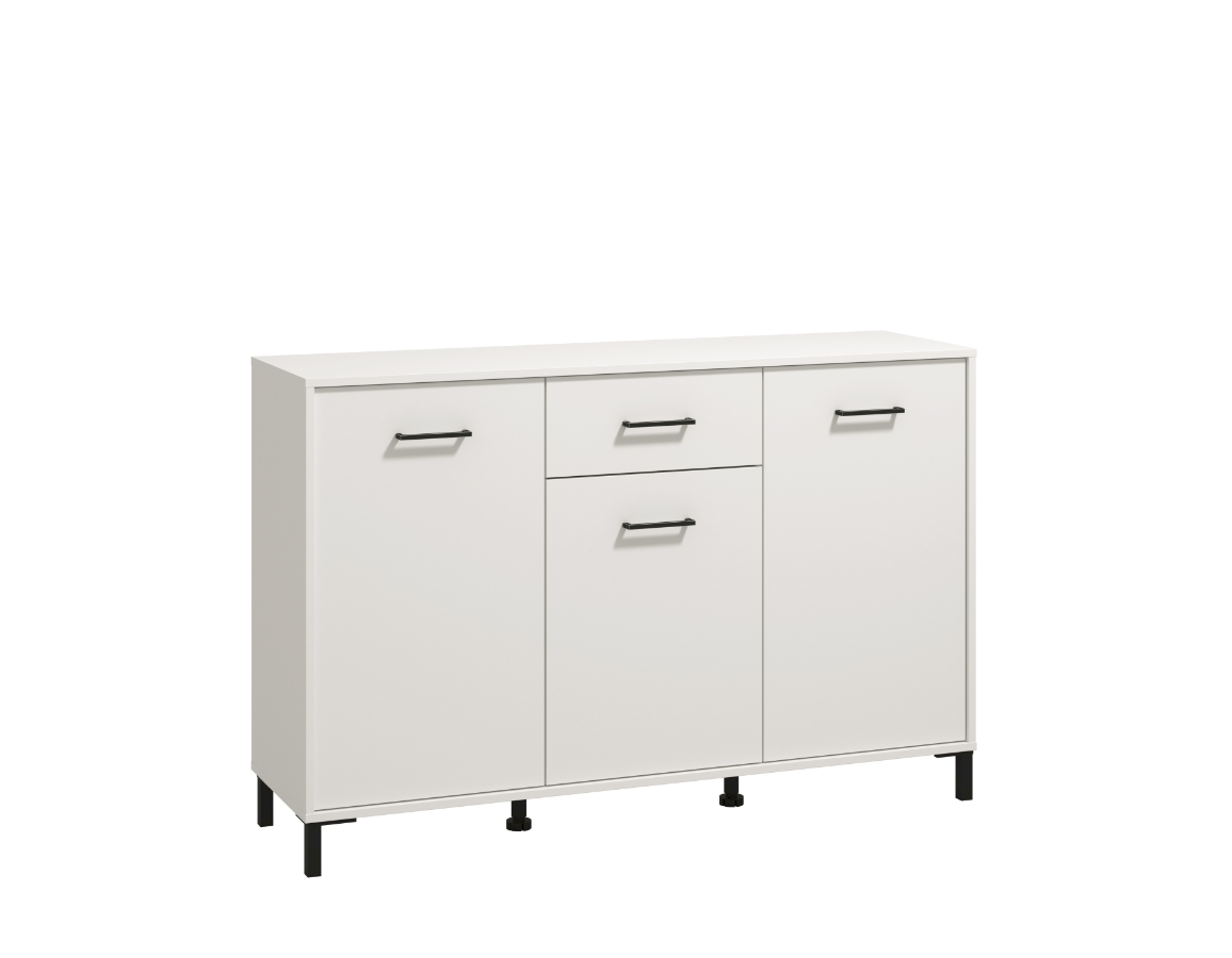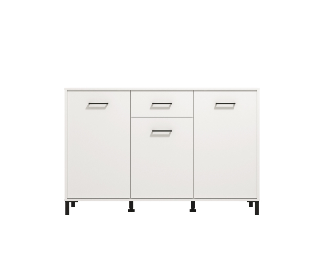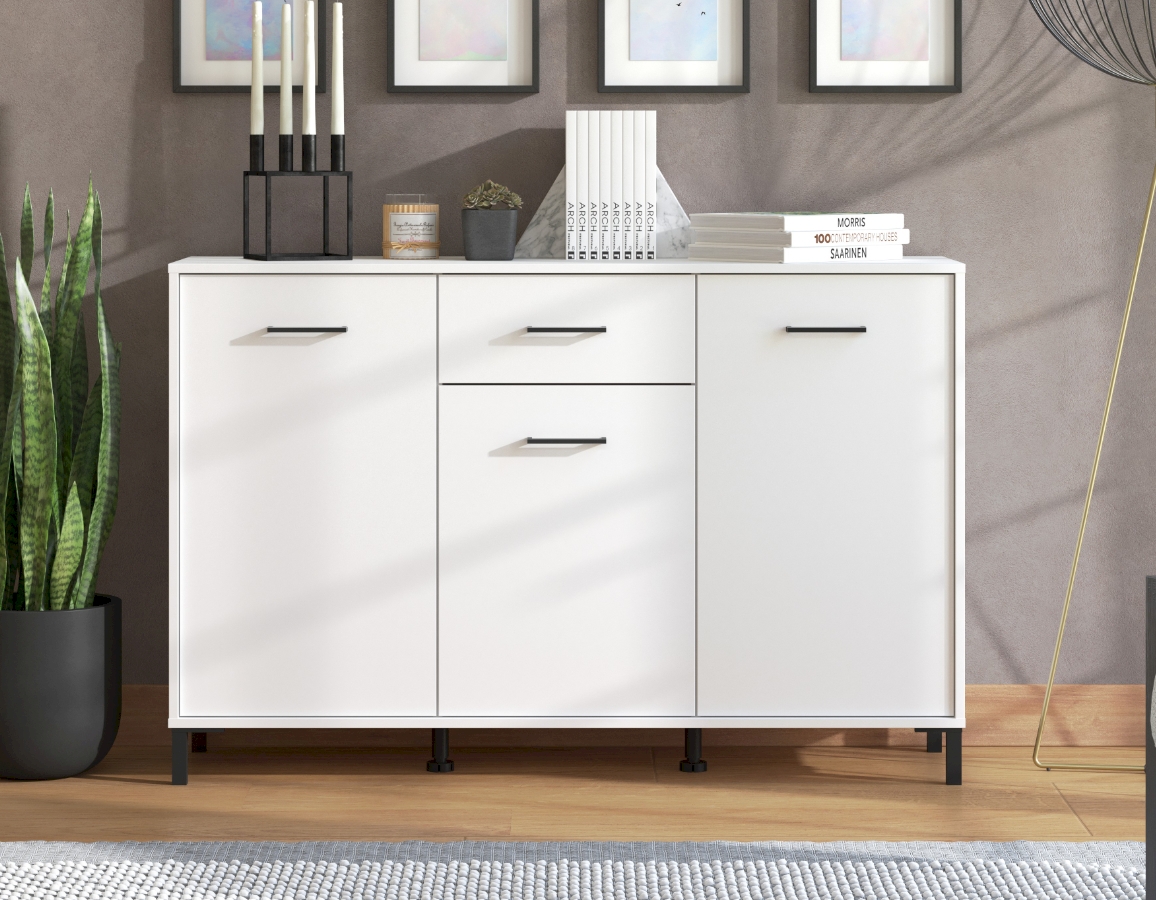 Funkcionalan komoda namještaja s tri zatvorena dijela i jednom ladicom.
