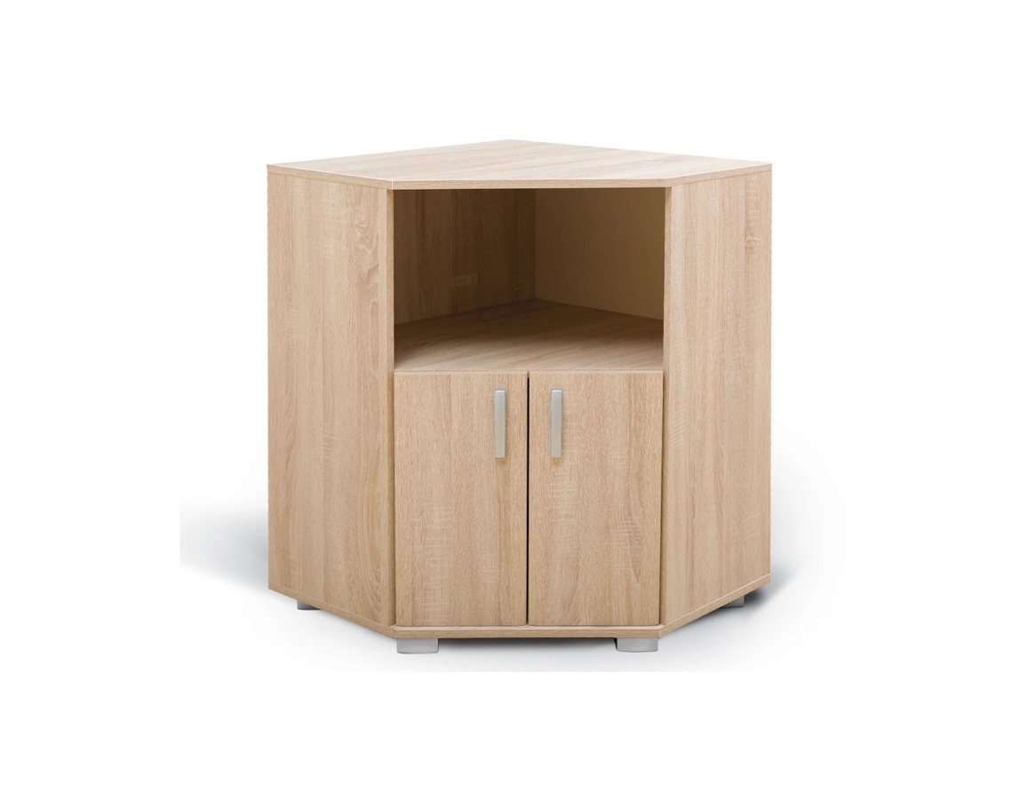 Kutna komoda Roma izrađena je od iverala u boji hrasta.