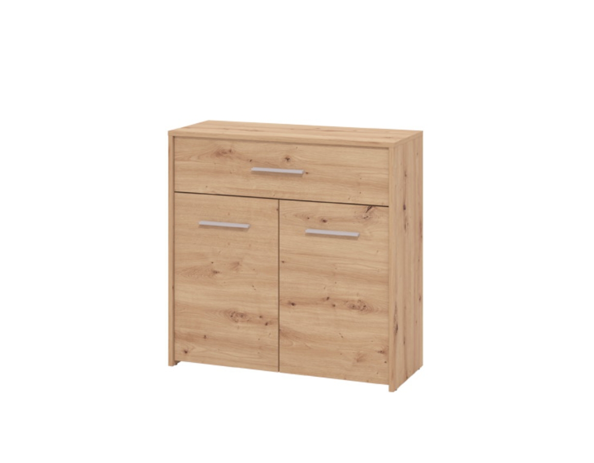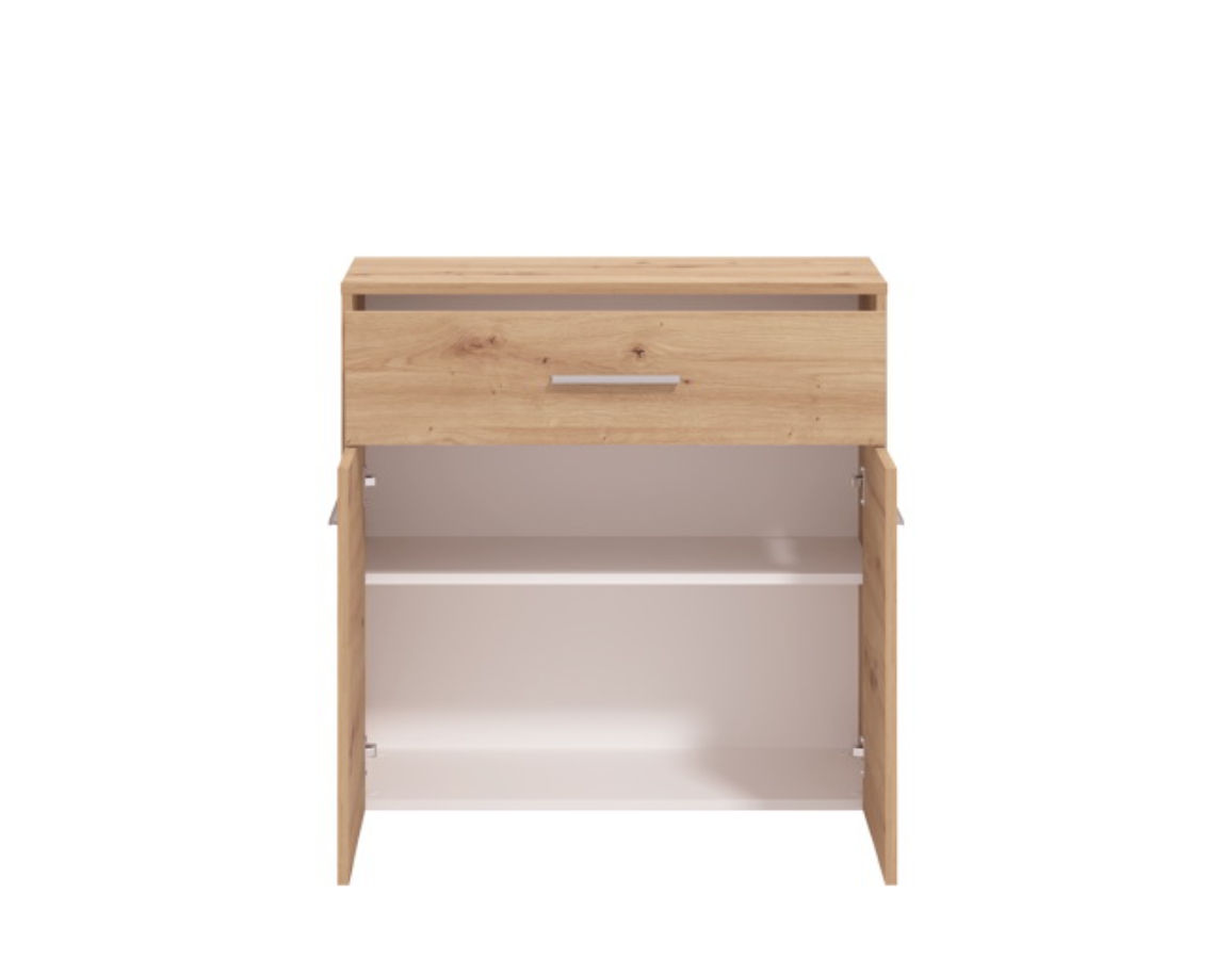 Dobro raspoređen korisni prostor ove komode sastoji se od dva zatvorena dijela s policom i praktičnom ladicom.