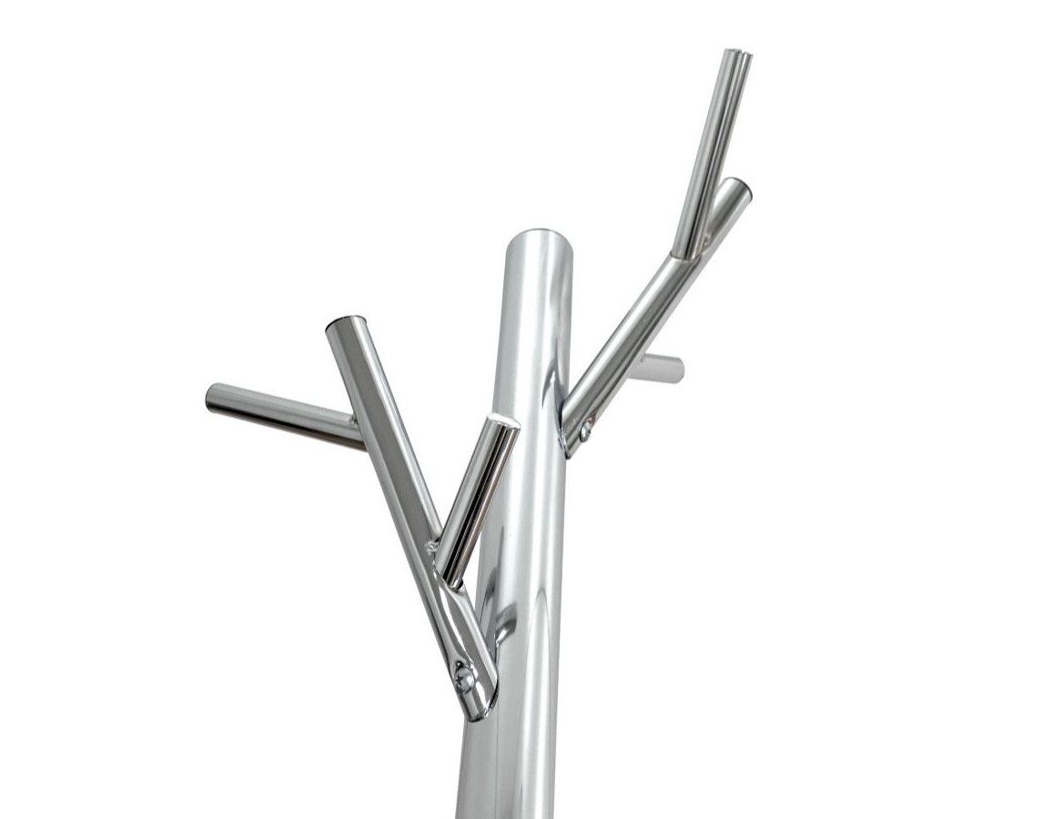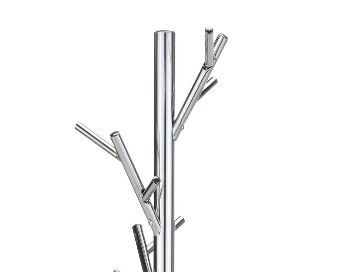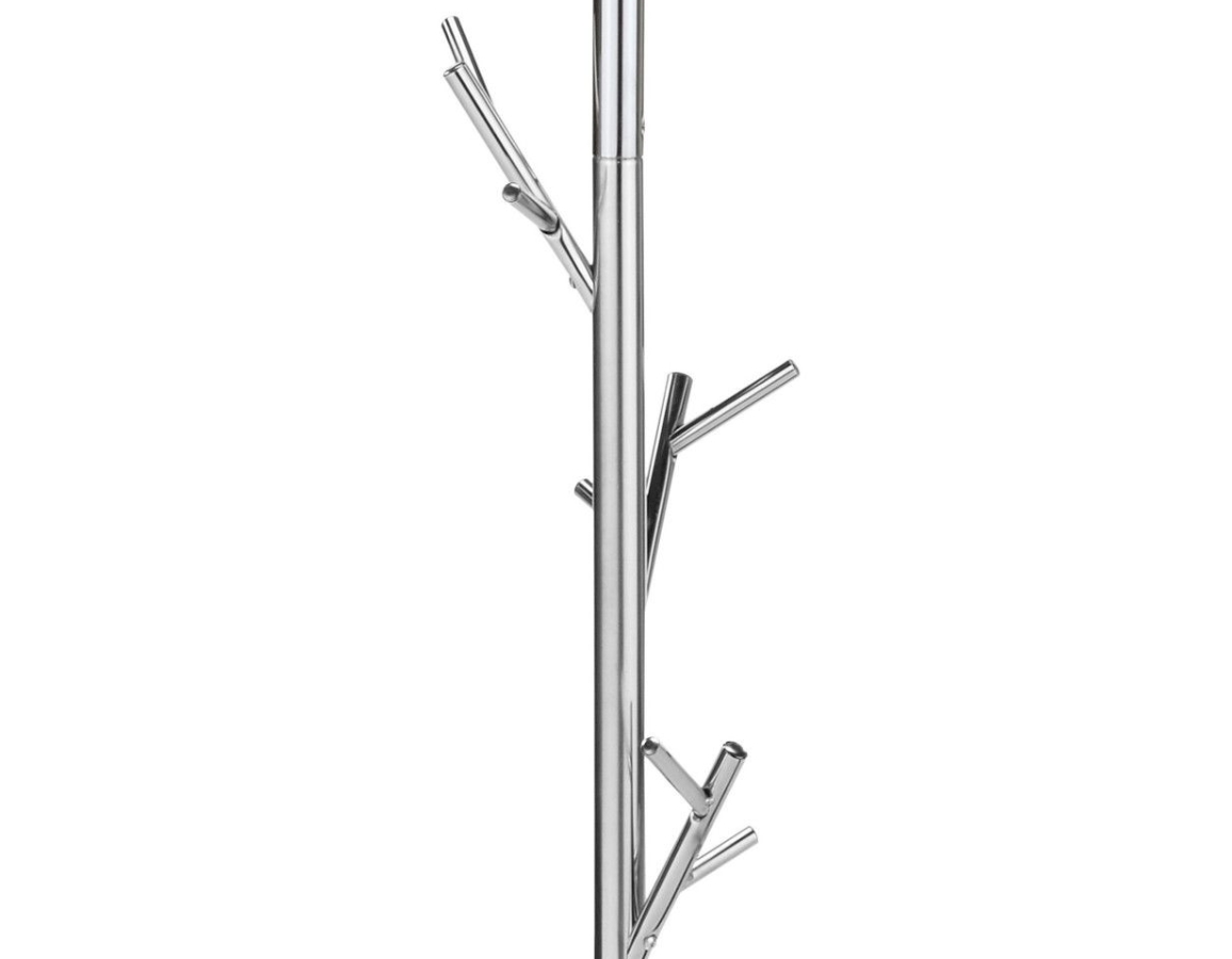 Moderna samostojeća vješalica sa sjajnom kromiranom završnom obradom.