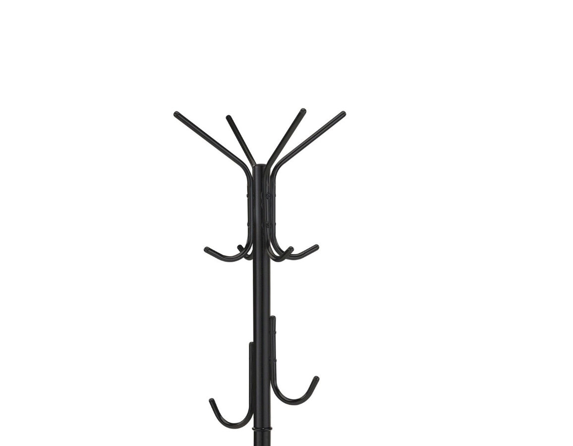 Moderna samostojeća vješalica s 10 kukica i stalkom za kišobrane.