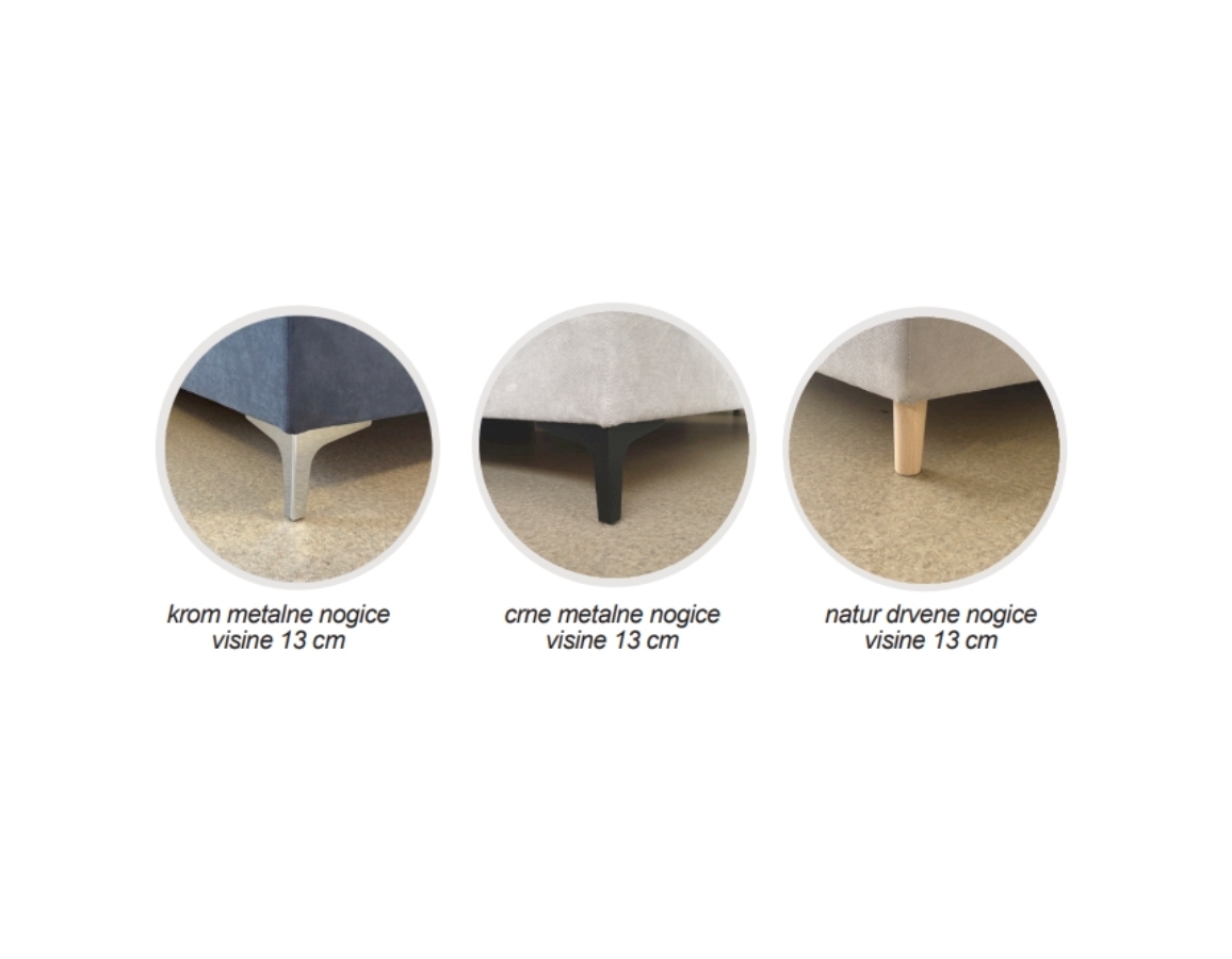 - 3 modela nogica: drvene natur visine 13 cm visine, crne metalne visine 13 cm, krom metalne visine 13 cm
