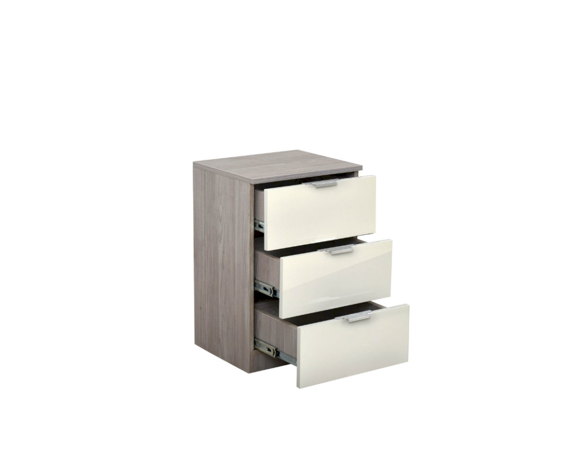 Kombinacijom suvremenih materijala i minimalističkog dizajna stvoreni su ELEGANCE LINE noćni ormarići sa 3 ladice. ELEGANCE LINE noćni ormarići 3F izrađeni su od oplemenjenog iverala debljine 18 mm, sadrže tri ladice na metalnim klizačima i sa metalnim ručkama. Osim upotrebe u spavaćim sobama, noćni se ormarić može koristiti i kako mini komode u dječjim sobama i uredima.