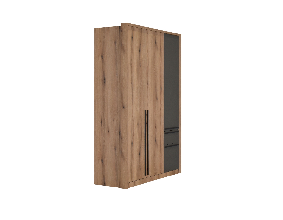 Funkcionalni ormar Kaliopa sadrži dio za vješanje i dio s policama ispod kojih se nalaze 2 ladice od kojih je donja veća.