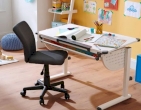 Jednostavna dječja uredska stolica s ergonomski oblikovanim naslonom.