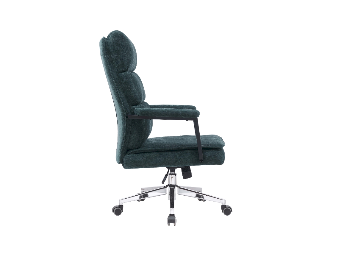 Nasloni za ruke stolice su fiksirani i podstavljeni na vrhu kako bi pružili udobno mjesto za odmor vašim rukama i smanjili opterećenje na vašim ramenima. Baza stolice izrađena je od metala s elegantnom kromiranom završnom obradom. Crni poliuretanski kotači glatko klize po raznim podnim površinama i omogućuju jednostavnu pokretljivost dok štite vaš pod od ogrebotina.