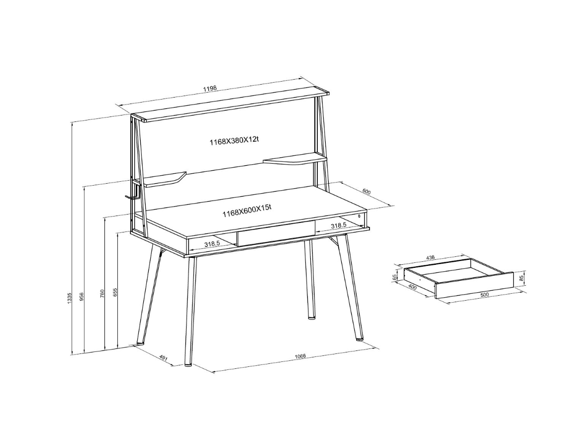 Svestrani radni stol opremljen je s dvije police i ladicom.